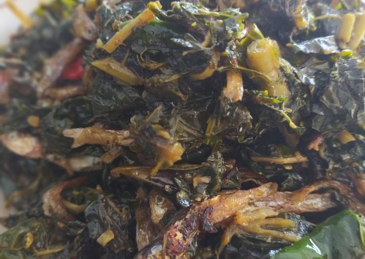 - Rebus daun pepaya, Iris tipis, lalu goreng teri sampai kering..